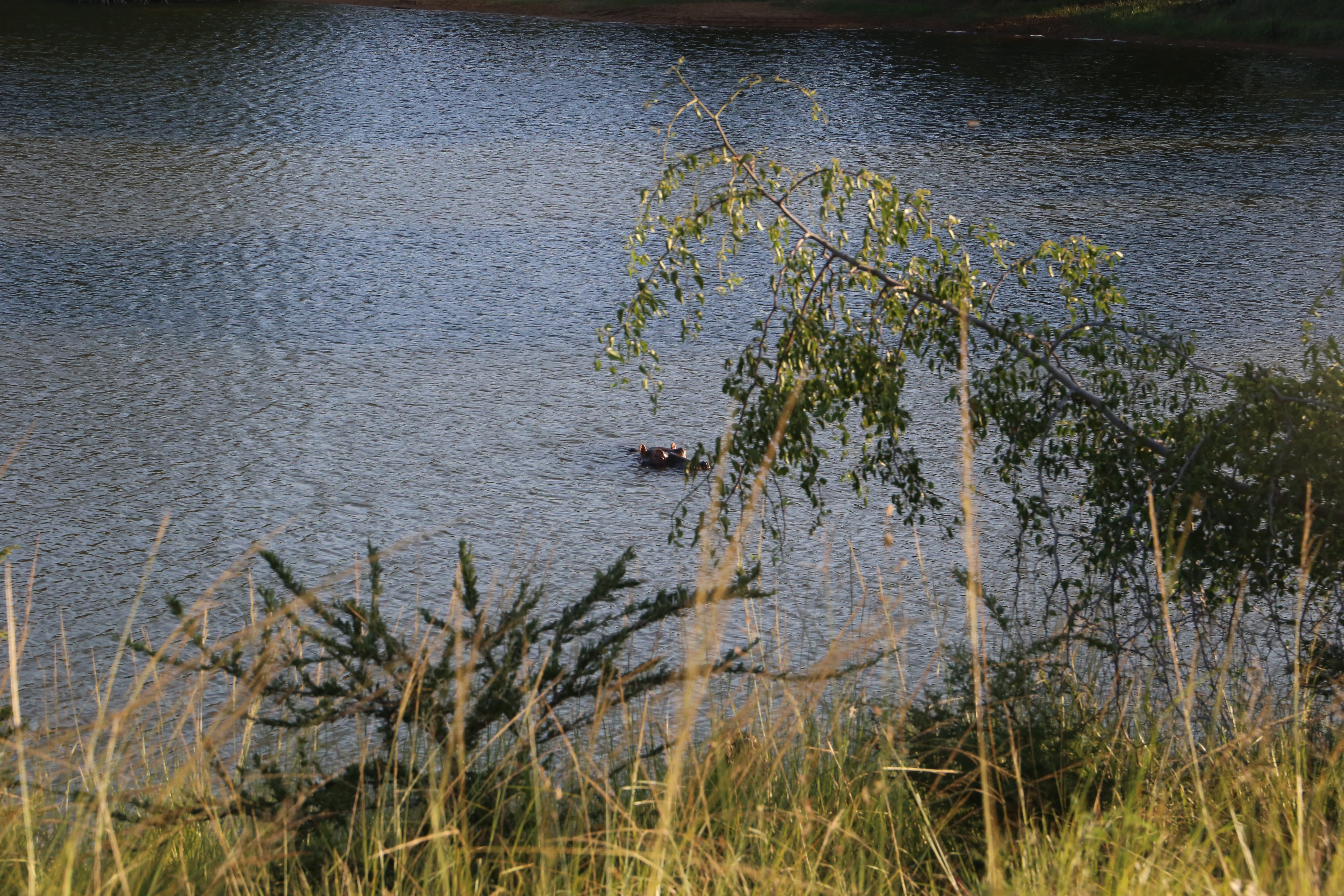 We saw a hippo with a baby on her back.
